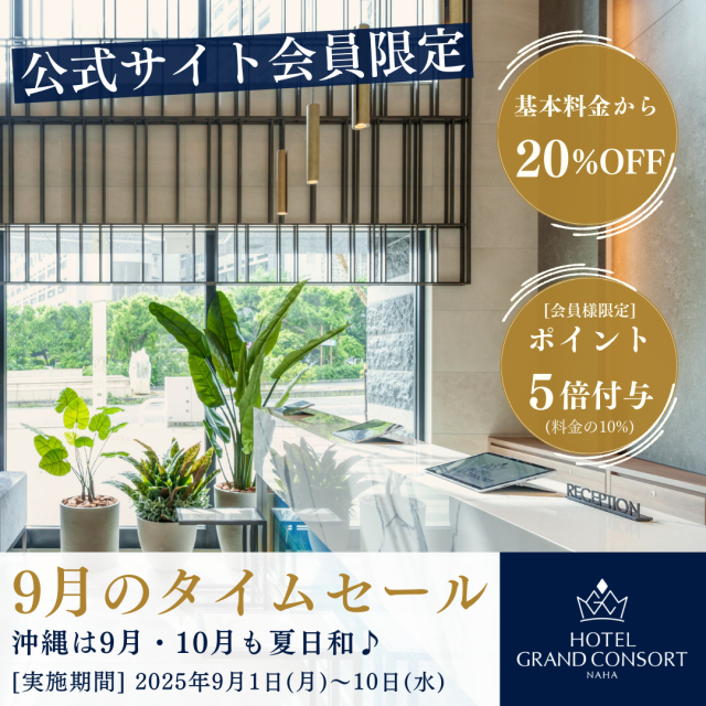 【9月・10月も沖縄は夏日和♪】9月のタイムセール開催<公式サイト限定20%OFF&ポイント5倍>