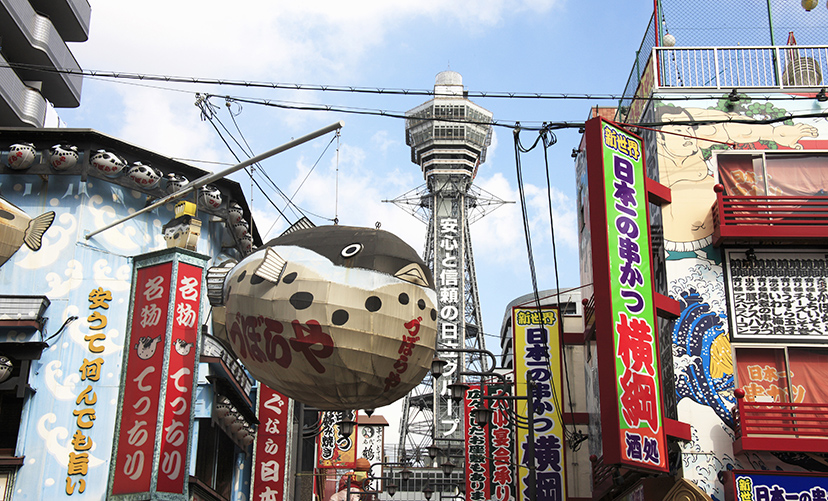 本場の街。なにわのシンボル通天閣も。